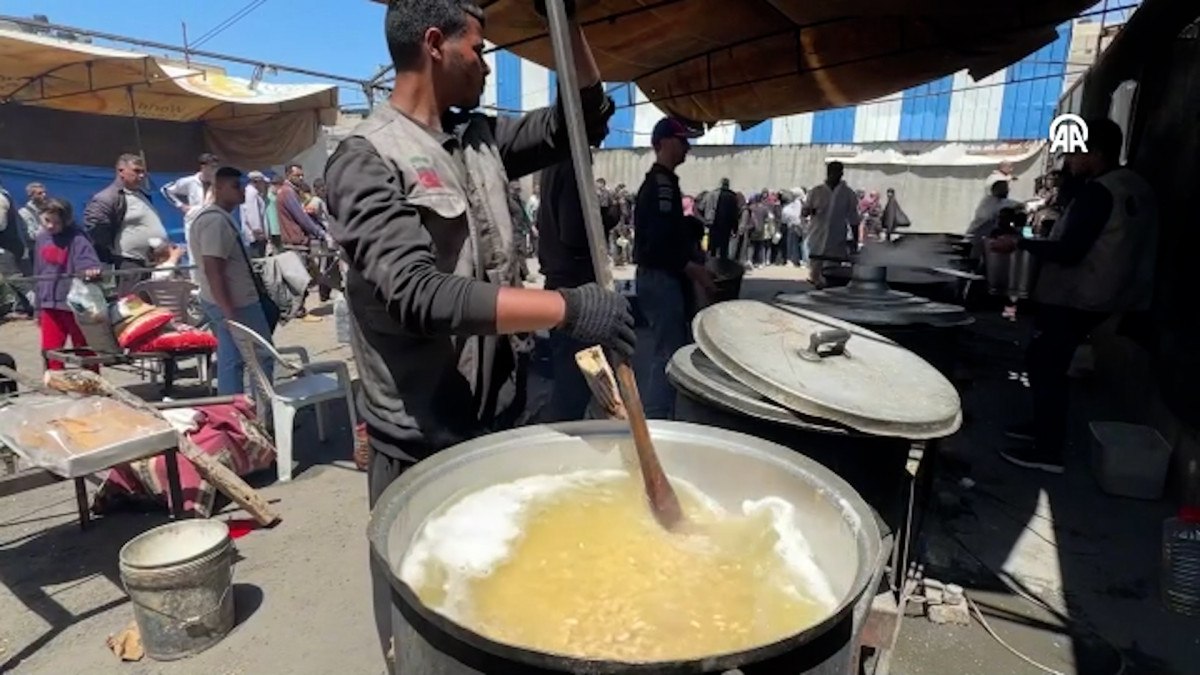 Gazze’nin orta kesitindeki Nusayrat Mülteci Kampı’nda savaşın yanı sıra bölgedeki “insani krizle” çaba eden Filistinliler için sıcak yemek dağıtımı yapıldı.