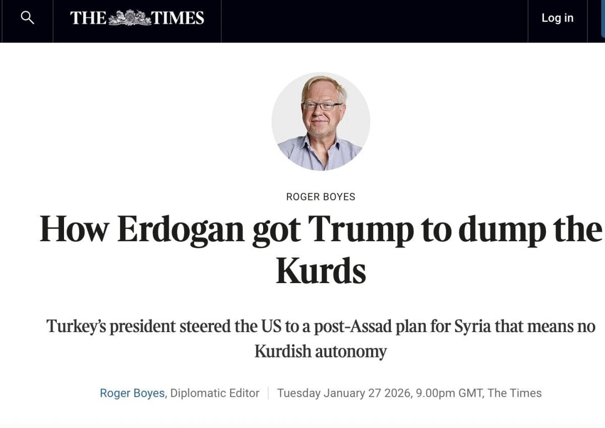 40 yıla yakın müddettir kurumda çalışan Britanyalı gazeteci Roger Boyes tarafından kaleme alınan tahlil “Erdoğan, Trump’ı Kürtlerden vazgeçmeye nasıl ikna etti” başlığıyla yayınladı.